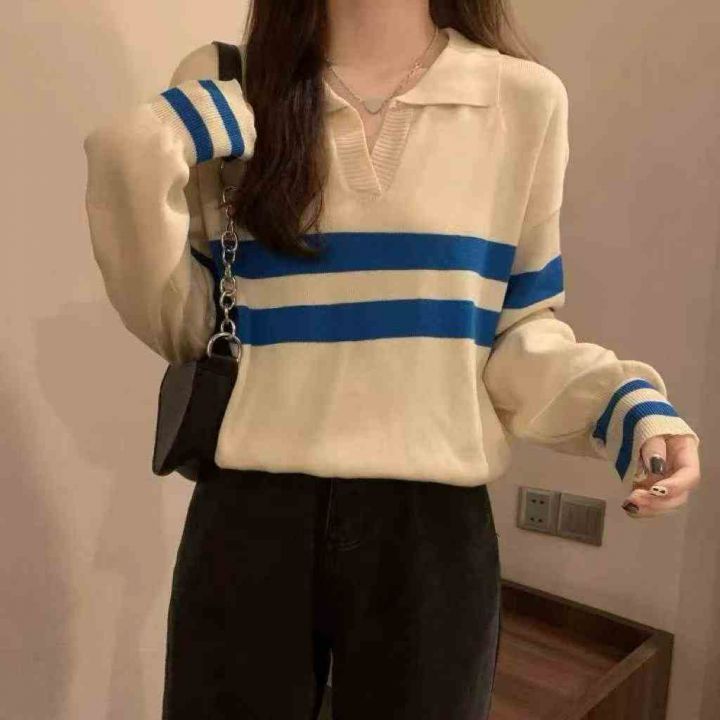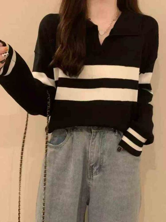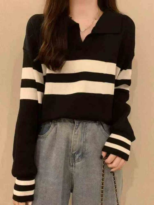 捡漏款,春秋新款女装撞色条纹减龄复古polo领长袖针织衫,独立包装,均码年龄软糯舒适弹力大,60件,全清6.9元超低价秒杀!