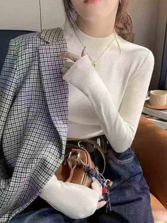 螺纹德绒半高领打底衫女长袖修身显瘦气质百搭上衣秋冬...