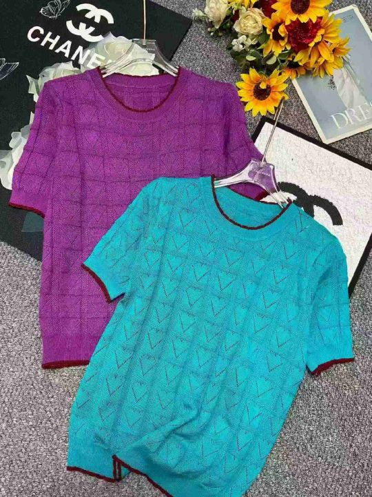 捡漏款,夏季新款浮雕镂空宽松显瘦气质薄款针织短袖,...