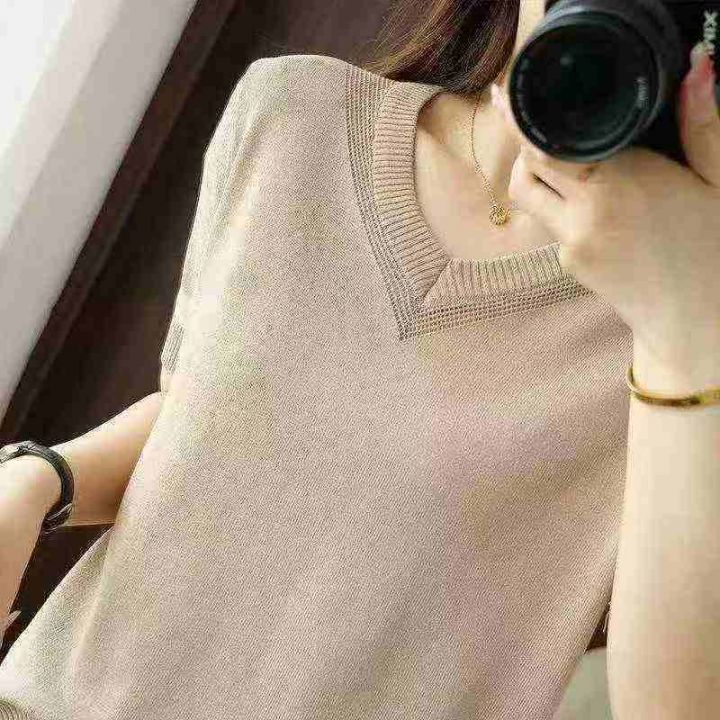 夏季新款韩版宽松显瘦百搭圆领设计款短袖针织衫,独立包装,均码面料柔软舒适弹力大,350件,全清5.9元超低价秒杀!分货加一!