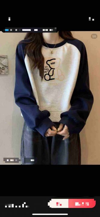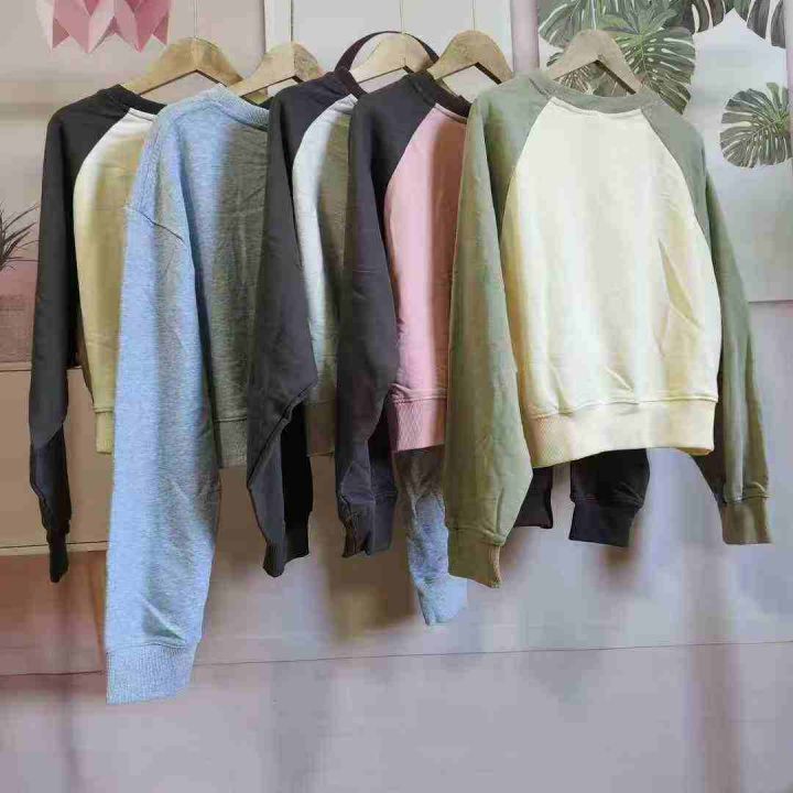 全清9.9元,短款卫衣插肩袖撞色女秋冬款2025新款无帽小个子宽松显瘦圆领上衣,S-L码,243件左右