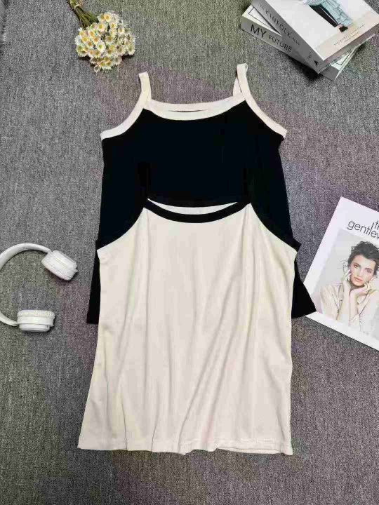 大码辣妹风无袖法式叉色吊带小衫,整款两色,高弹力,...