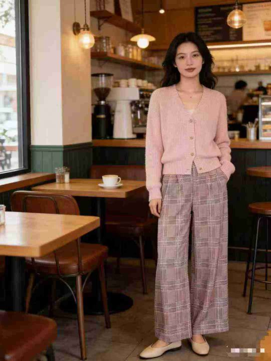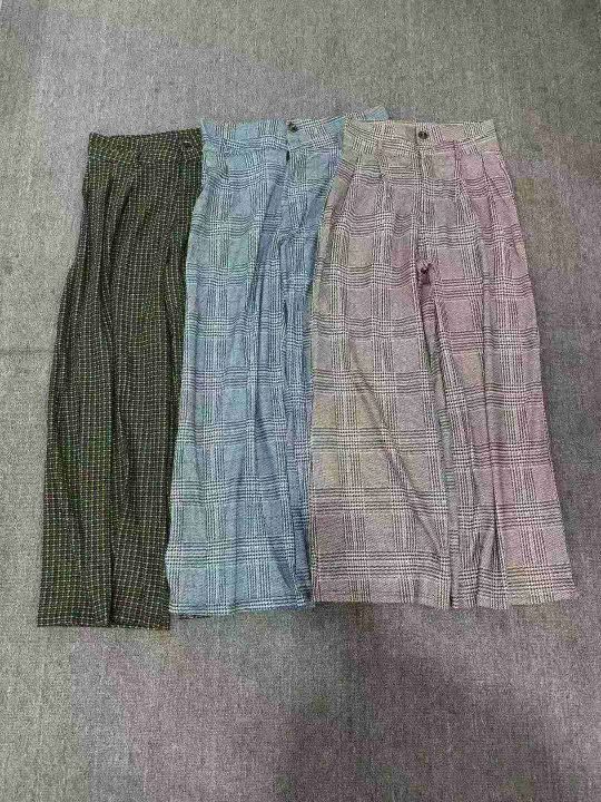 格子高腰长裤秋季新款欧美街拍复古淑女直筒肥腿阔腿裤,独立包装,码数S-2XL,数量158条