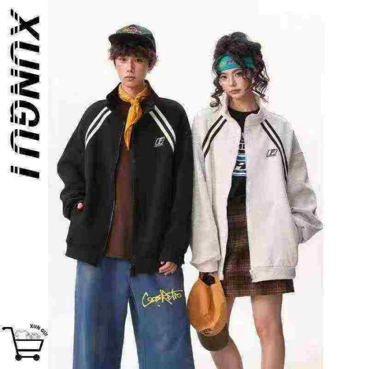国潮立领运动卫衣外套女男秋季新款撞色拼接夹克宽松拉...