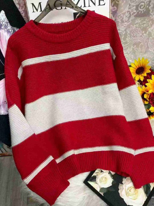 秋冬新款撞色条纹宽松百搭韩系慵懒风套头毛衣,独立包...