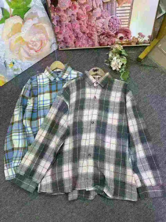 港风复古格子长袖衬衫季设计感宽松衬衣外套,1到4码,...