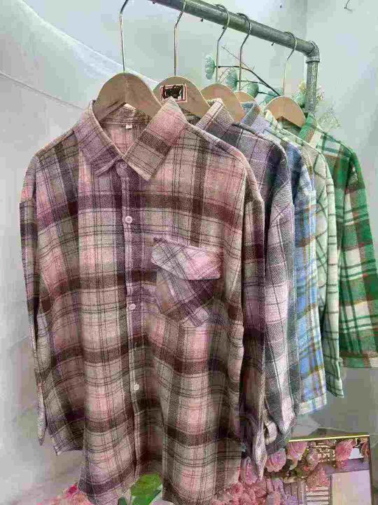 港风复古格子长袖衬衫季设计感宽松衬衣外套,1到4码,图片款,图片色,独立包装,货品干净,53件,8.8清,不分货