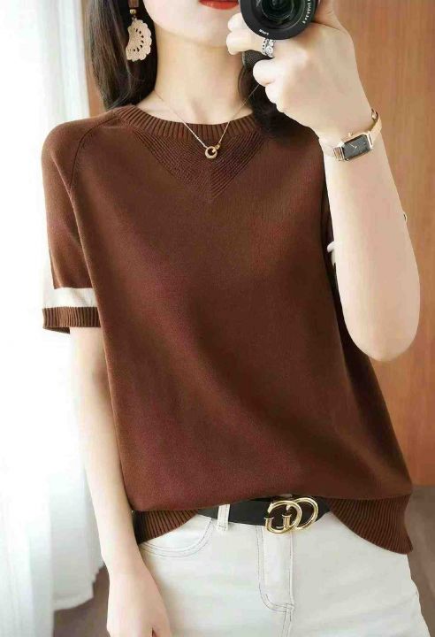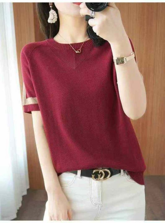 夏季新款韩版宽松显瘦百搭圆领设计款短袖针织衫,独立...