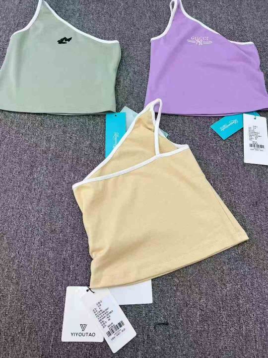 230件品牌甜辣风斜肩背心,小整款,多款多色图案多,均码,面料螺纹棉跟纯棉。(模特图仅供参考上身效果)
