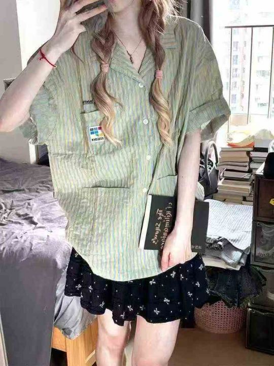 复古条纹短袖衬衫114件8.8,