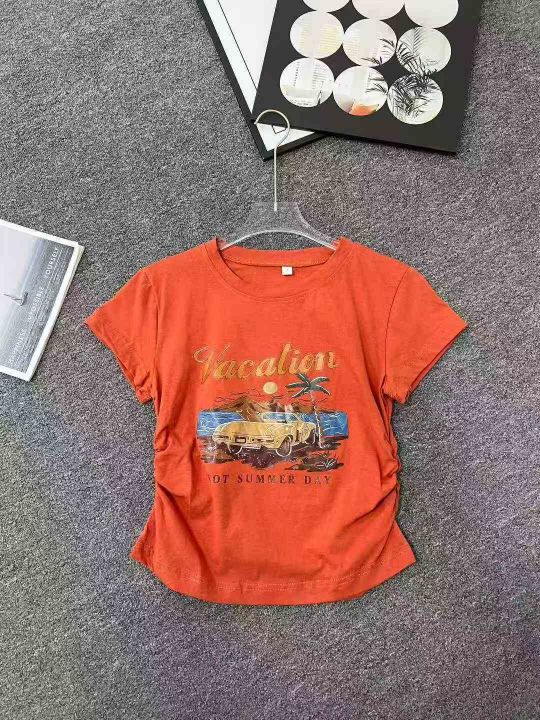 ☕️美式复古正肩短袖t恤夏季不规则设计感高腰收腰短款修身辣妹上衣纯棉500件全清5.8元分货6.8元,码数S到XL,高弹力,大货橘色多,超低价秒杀[庆祝][庆祝][庆祝]