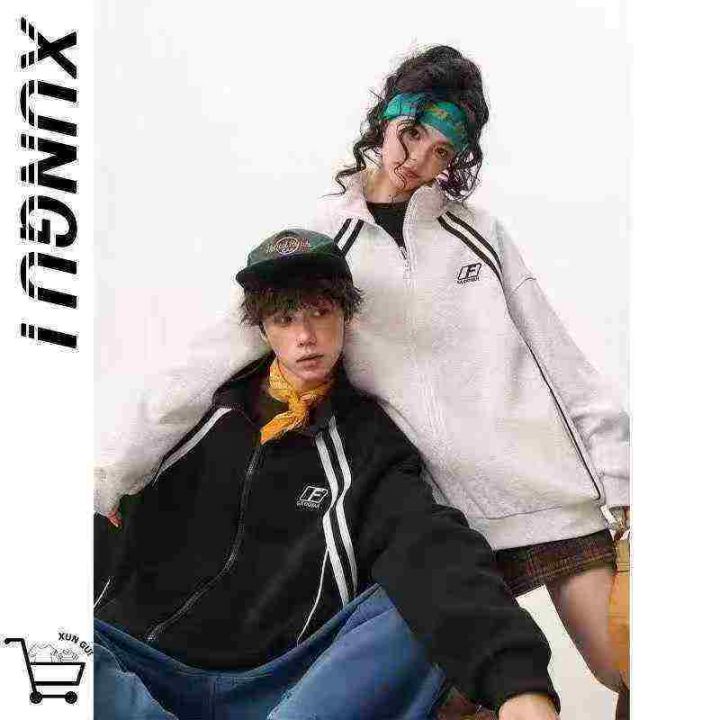 国潮立领运动卫衣外套女男秋季新款撞色拼接夹克宽松拉...