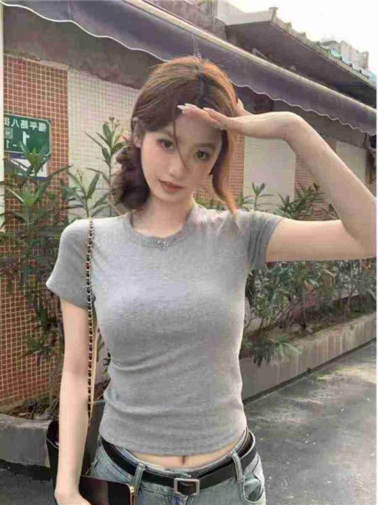 ☕️灰色纯棉辣妹短袖T恤150件全清8.8元,S到XL,独立包装,春夏港味气质圆领纯色百搭短袖T恤女韩版修身显瘦短款别致上衣