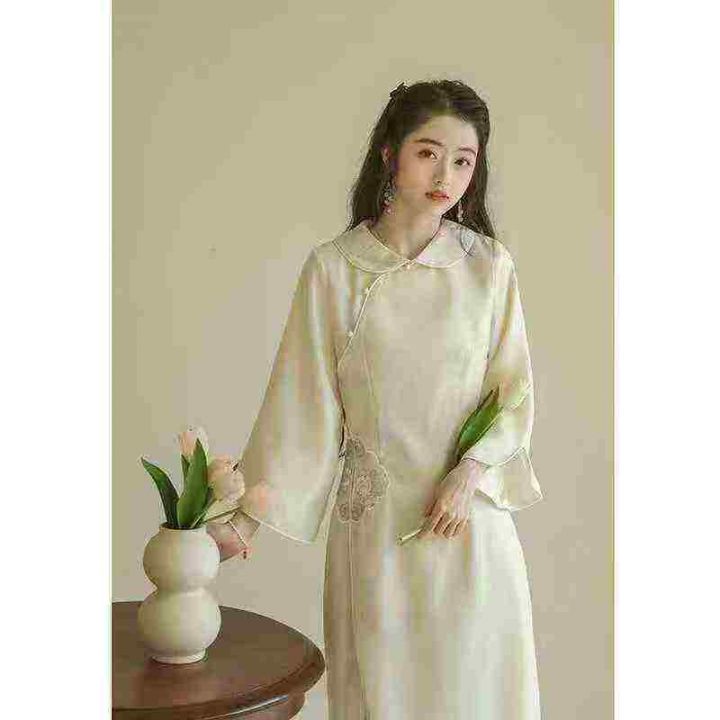 国风复古云纹刺绣日常改良版连衣裙,[爱心]180件左右,码数S-2XL,穿80-120斤,万佳档口货,原包装️无瑕疵,实体店品质,分货加一
