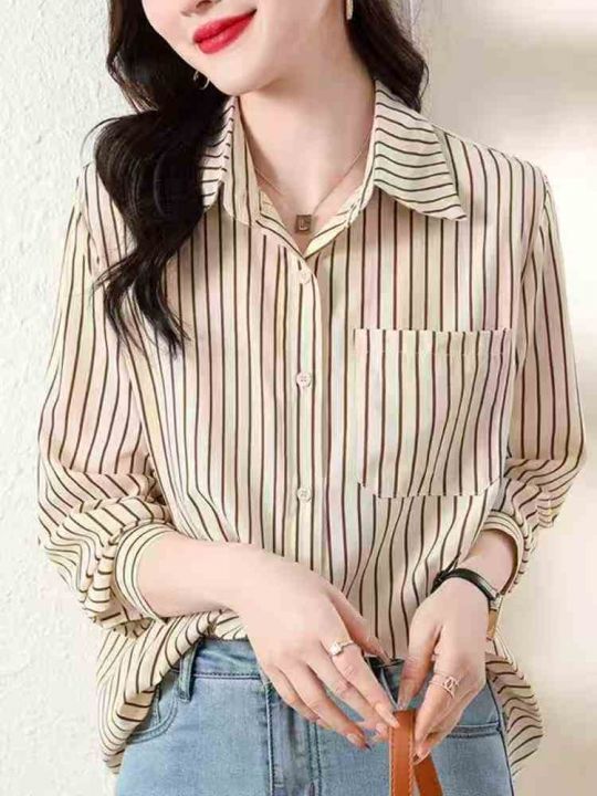 条纹衬衫女士装早春秋2026年新款爆款时尚小个子洋气上衣长袖衬衣,1到4码,独立包装,487件,独立包装,货品干净,7.8清,分货加1