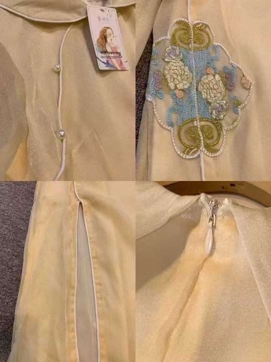 国风复古云纹刺绣日常改良版连衣裙,[爱心]180件左右,码数S-2XL,穿80-120斤,万佳档口货,原包装️无瑕疵,实体店品质,分货加一