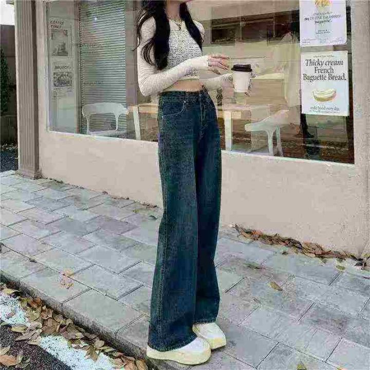 YKK拉链复古直筒阔腿牛仔裤女高腰显瘦拖地裤子,单款...