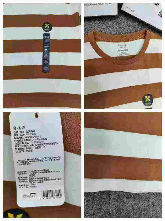圆领条纹纯棉短袖T恤,清9.8码数M一3XL,数量610件左...