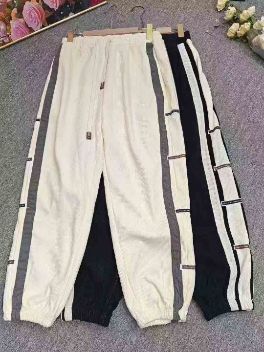 侧边条纹灯芯绒男冬季加绒加厚潮牌宽松束脚裤子,整款三色,独立包装M-3XL,800件左右,9.5清,分+1