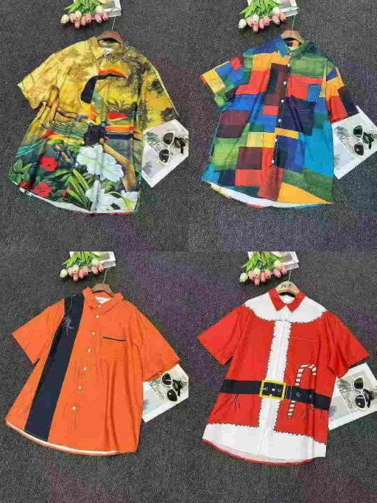 欧洲站夏季新款男士衬衫夏日风情时尚短袖免熨烫翻领衬...