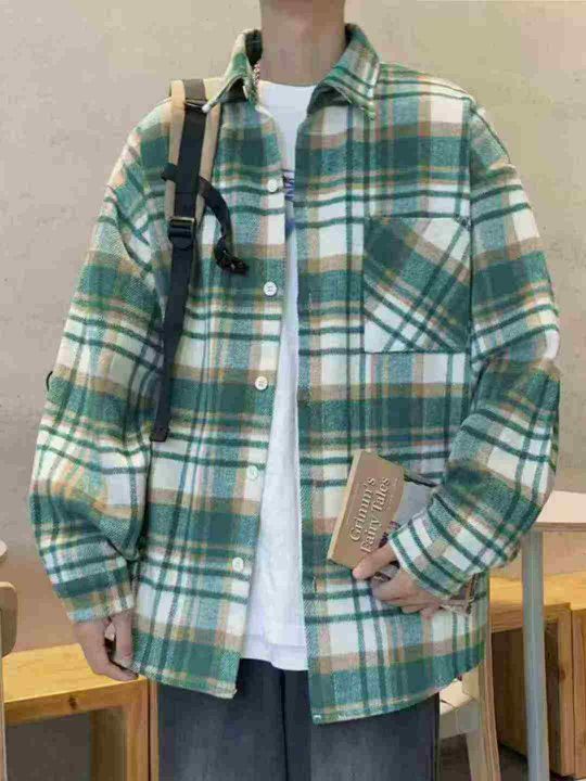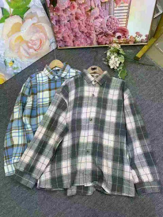 港风复古格子长袖衬衫季设计感宽松衬衣外套,1到4码,...