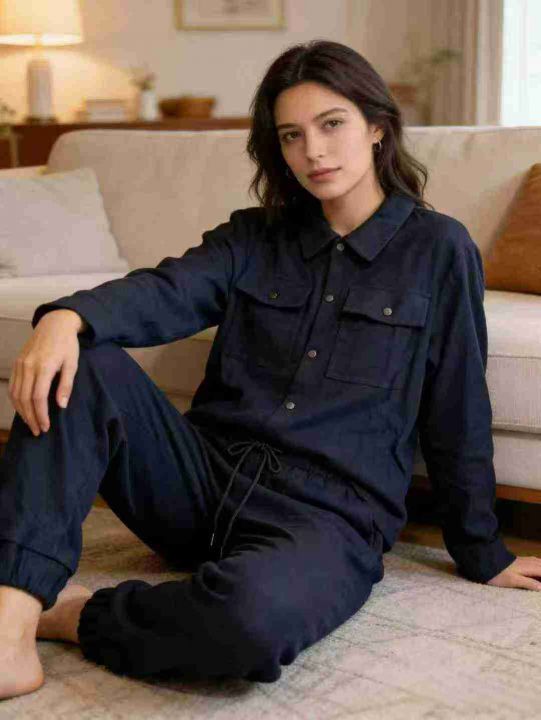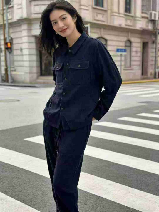工装休闲风套装慵懒随性风,藏青色,独立包装,码数M-2XL,数量80套