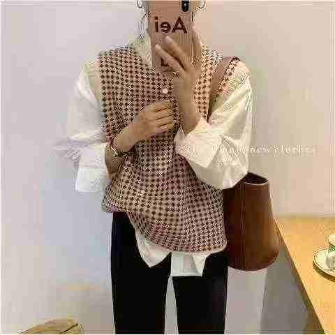 秋季新款韩版复古撞色提花宽松叠穿针织毛衣马甲背心,独立包装,均码宽松版...