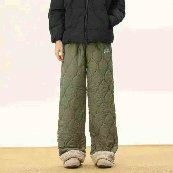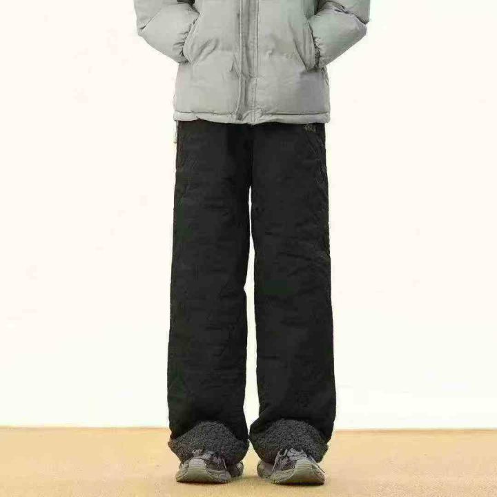 防寒休闲羊羔保暖裤男女冬季潮宽松葫芦纹防水直筒裤加...