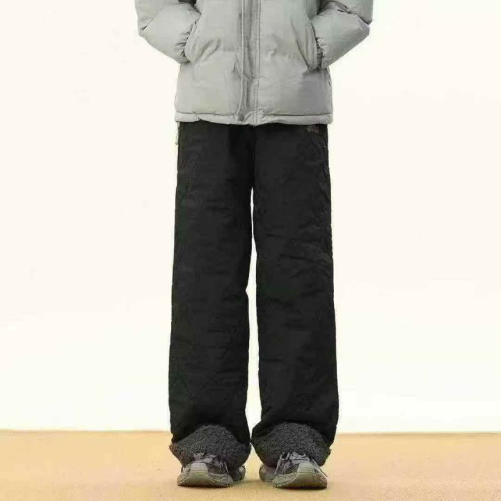 防寒休闲羊羔保暖裤男女冬季潮宽松葫芦纹防水直筒裤加...