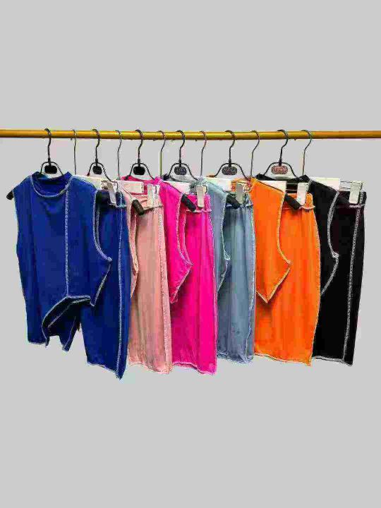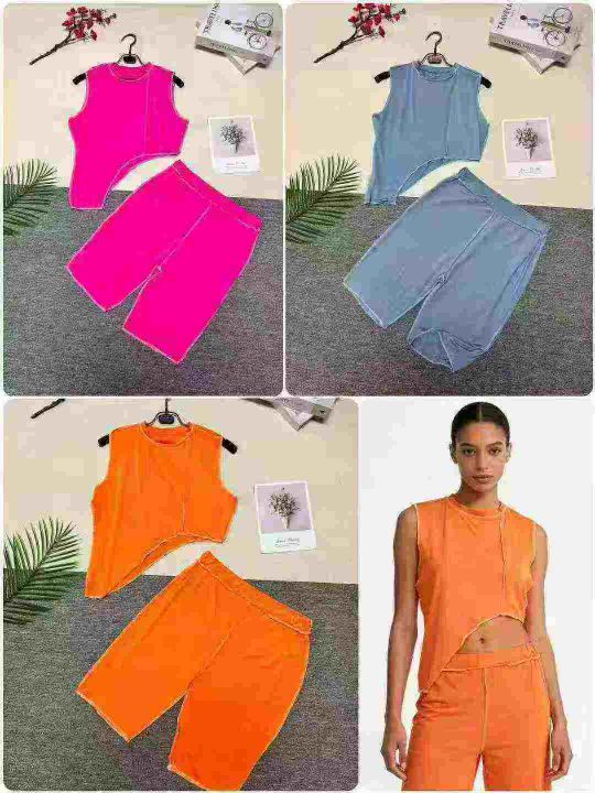 欧美洋气不规则线条无袖上衣+线条短裤两件套,整款多色,数量:240套,码数:S-2XL,品质好,有独立包装。