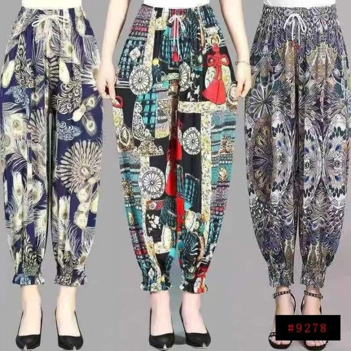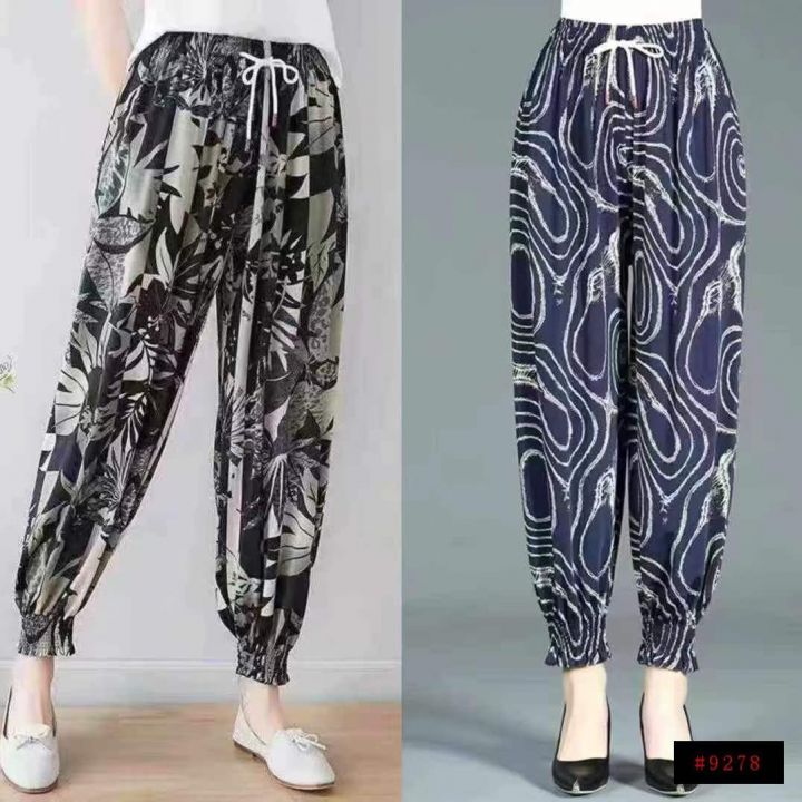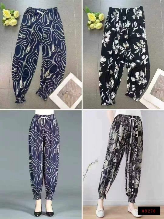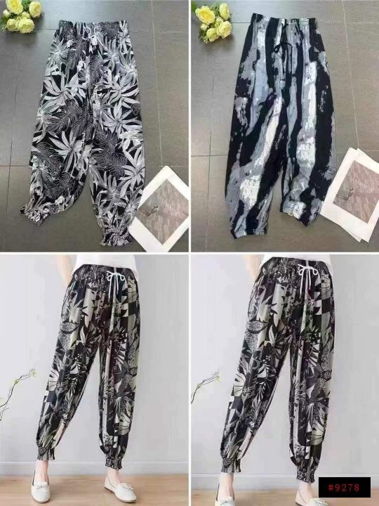 下身九分裤[太阳]全清7.8,4000件、均码。 中老年女裤夏季冰丝薄款高弹力灯笼裤妈妈大码束脚九分高腰宽松印花裤子,抽绳松紧腰,面料柔软舒适,腰部有弹力松紧,不挑人,非常适合摆地摊、早市/夜市摆地摊[666]这个性价比真的太划算啦[强]垂感十足,独立包装、100/200件起多款混配8.8@_@