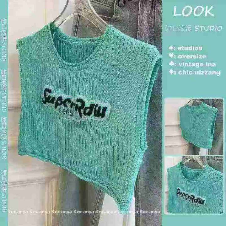 纯欲甜辣短款字母刺绣针织背心女夏季外穿宽松无袖t恤洋气小衫女,码数1-2码(sm码),数量196件