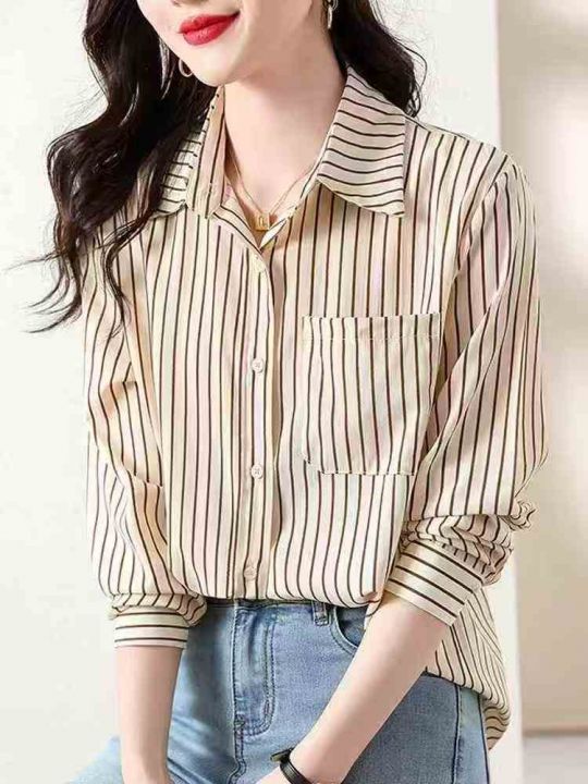 条纹衬衫女士装早春秋2026年新款爆款时尚小个子洋气上衣长袖衬衣,1到4码,独立包装,487件,独立包装,货品干净,7.8清,分货加1