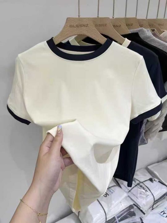 全清4.8元,6180件美式甜辣妹韩版假两件长袖t恤女春夏修身打底衫撞色纯欲显...
