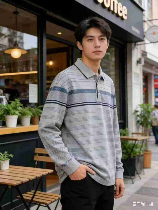 长袖男装条纹polo衫,清9.8