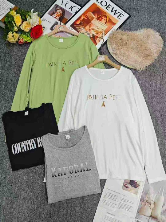 电商仓回收342件简约百搭印字圆领慵懒男女同款长袖T恤,码数S-2XL。面料柔软有弹性,独立包装,分货➕0.5