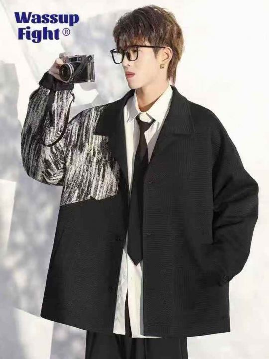 ☕️男装外套高级感痞帅西服拼接工装夹克外套176件全...