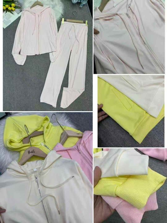 连帽拉链卫衣外套女时尚减龄两件套纯色运动套装,独立包装,码数1-6,粉色款为主,数量137套,货号126#59