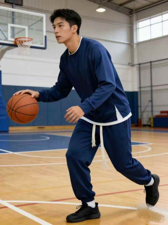 全清价9.9男女同款圆领假两件长袖运动酷帅束脚套裤,...