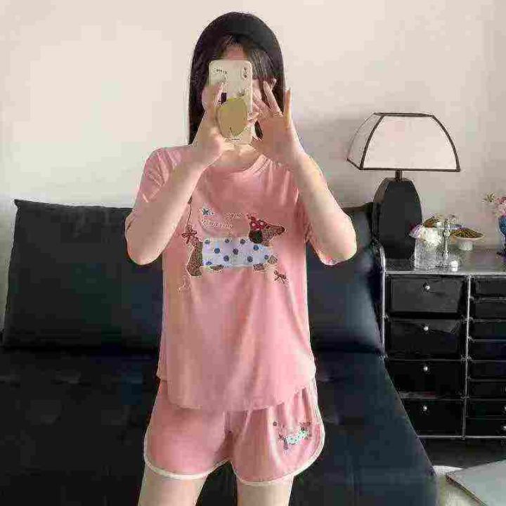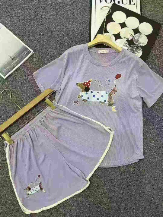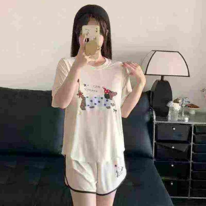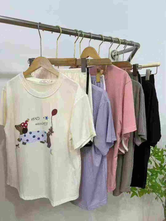 ☕️带胸垫短袖短裤家居服睡衣套装283套全清9.8元,码数M到XXL,高弹力,单款5个色,独立包装,夏季短袖冰丝罗纹宽松甜美可爱卡通家居服套装