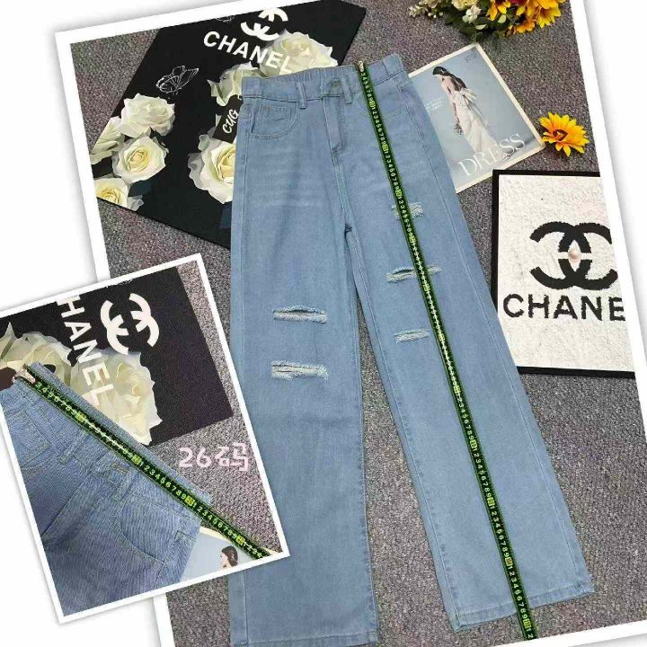 春夏季新款品牌原单宽松半松紧腰破洞设计款直筒阔腿牛仔裤,独立包装带吊牌,图片款,码数26--36码双码一首码,780件,全清9.9元超低价秒杀!分货加一!