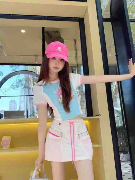 ☕️纯棉辣妹T多巴胺撞色插肩袖减龄卡通印花短款短袖圆领T恤女100件全清7.8元 ,码数M到XL,单款单色 独立包装[庆祝][庆祝][庆祝]
