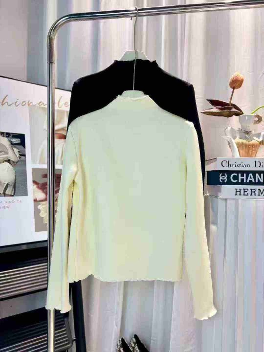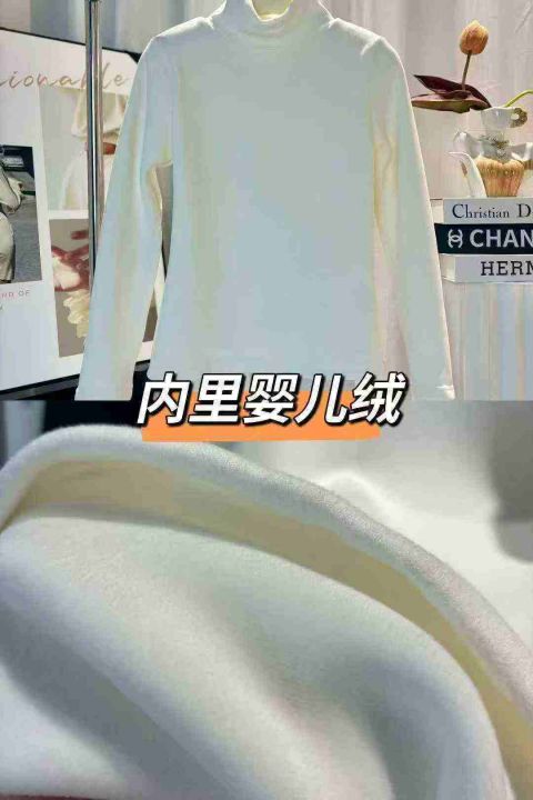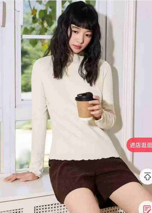 木耳边半高领打底衫女秋冬新款加绒保暖内搭外穿上衣,两个图片款