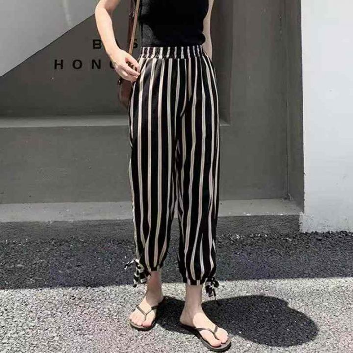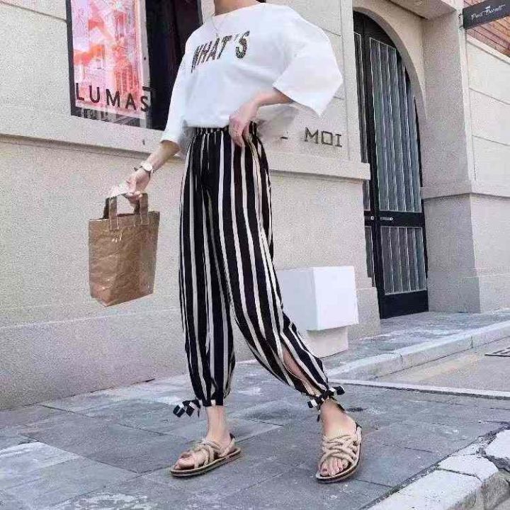 高级感黑白条纹独特别致休闲长裤,[爱心]125件左右,码数S-XL,穿70-130斤,[666]工厂原包装瑕疵