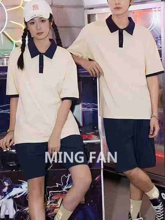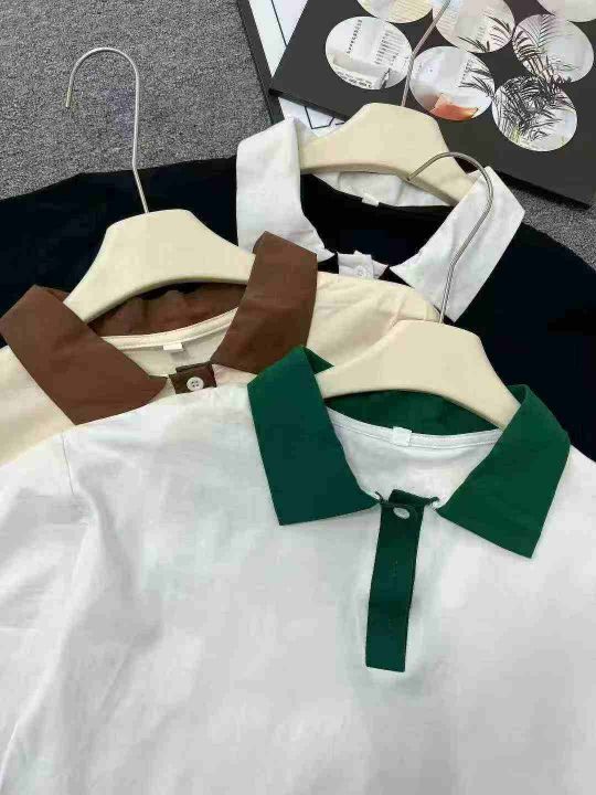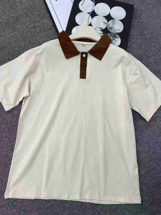 ☕️男女美式简约翻领拼色Polo衫短袖t恤夏季潮牌宽松...