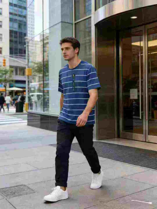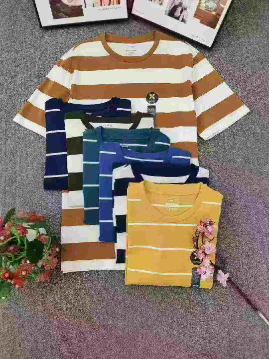 圆领条纹纯棉短袖T恤,清9.8码数M一3XL,数量610件左...