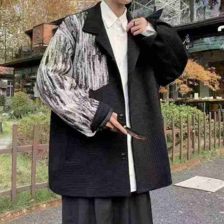 ☕️男装外套高级感痞帅西服拼接工装夹克外套176件全...