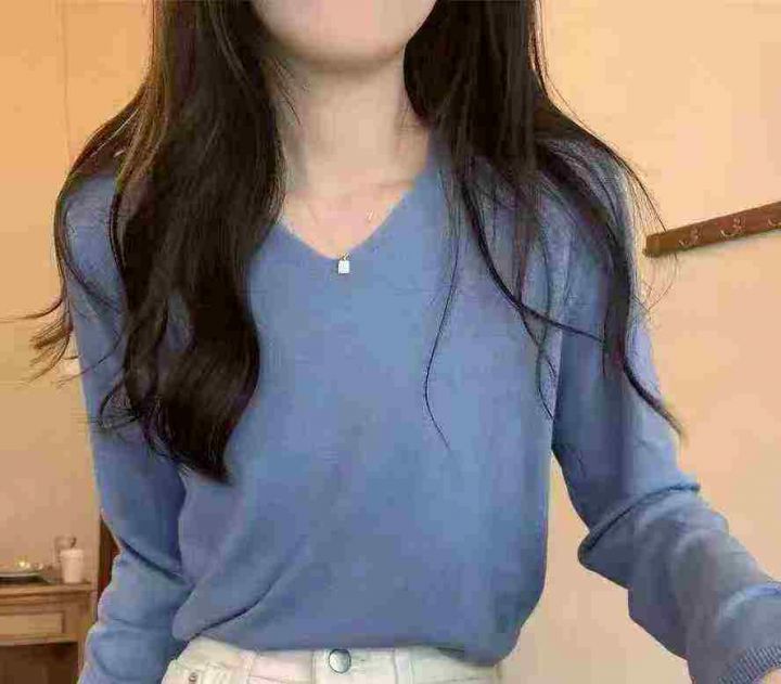 上新全清:2.8一件韩版V领设计感遮肉宽松百搭长袖上衣...
