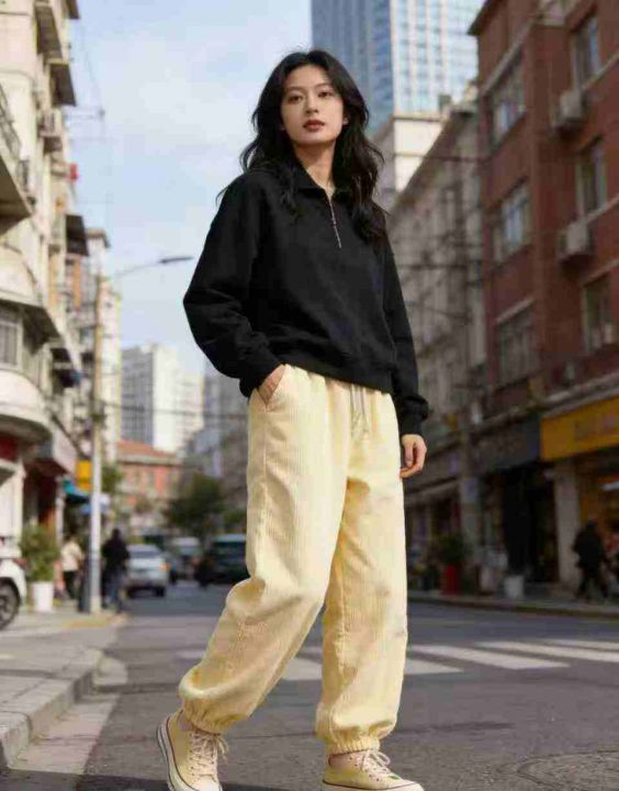灯芯绒裤子女春秋冬季加绒阔腿高腰显瘦休闲抽绳运动裤,数量569件,码数s-3...