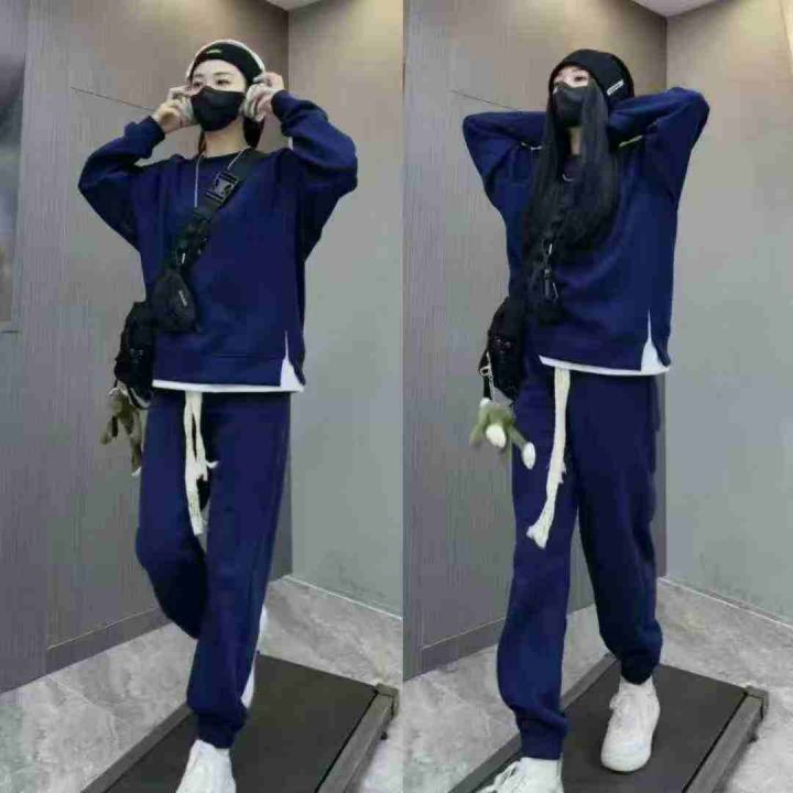 全清价9.9男女同款圆领假两件长袖运动酷帅束脚套裤,...